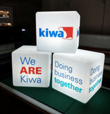 Onze lichtbakken en displays zijn gemaakt voor zakelijke evenementen. Er is geen montage vereist, dus ze zijn direct klaar voor gebruik.