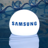 Drijvende zwembadverlichting met logo, verlichte zwembadvlotter voor bedrijfsevenement, ronde LED-lichtbak, bewegwijzering voor zakelijke evenement