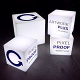 Gepersonaliseerde LED tafellamp met branding, merk, logo verlichte kubus lichtbak