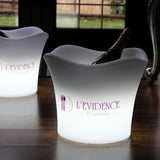 Voeg een uniek tintje toe aan de inrichting van uw evenement met deze verlichte LED-wijnkoeler, op maat gemaakt met uw logo.