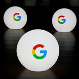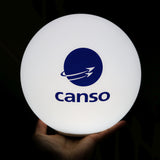 Ronde LED-logo lightbox, bolvormige vloerlamp, promotiemateriaal, verlichte vrijstaande verlichte display bewegwijzering voor zakelijk evenement